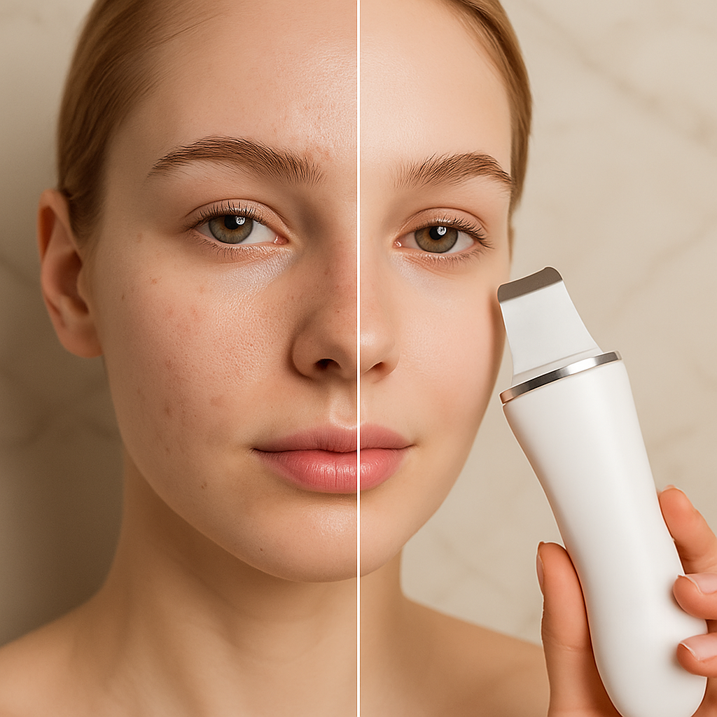 An ultrasonic skin scrubber that delivers a deep, gentle cleanse to lift away oil, dirt, and dead skin — helping reduce blackheads and reveal a smoother, brighter-looking complexion. USB-C rechargeable and easy to use at home.